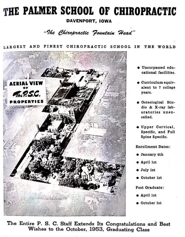 The P.S.C. - The Palmer School of Chiropractic: “The Chiropractic Fountain Head”. Davenport, Iowa, USA