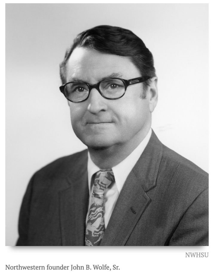 Fondé le 2.6.1941 par le Président Dr. John B. Wolfe D.C. avec l’aide d’un collègue et trois étudiants (à cause du commencement de la 2ème Guerre Mondiale pour les US) à Minneapolis, Nicollet Avenue, 6ème étage, W.T. Grant Department Store. 1949 déménagement à la Park Avenue 2222 à Minneapolis. 1974 déménagement à St.Paul, Mississippi Boulevard 1834. 1983 déménagement final à Bloomington, West 84th Street 2501 après une donation (500’000US$) d’un Patient Chiropratique reconnaissant: M. Dan Gainey, propriétaire de Jostens Inc.!