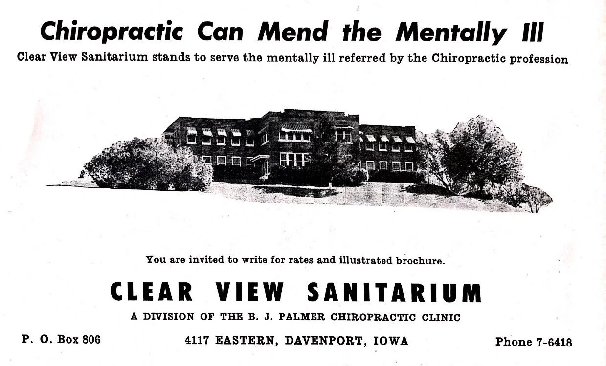 Clear View Sanitarium: A division of the Palmer Chiropractic Clinic