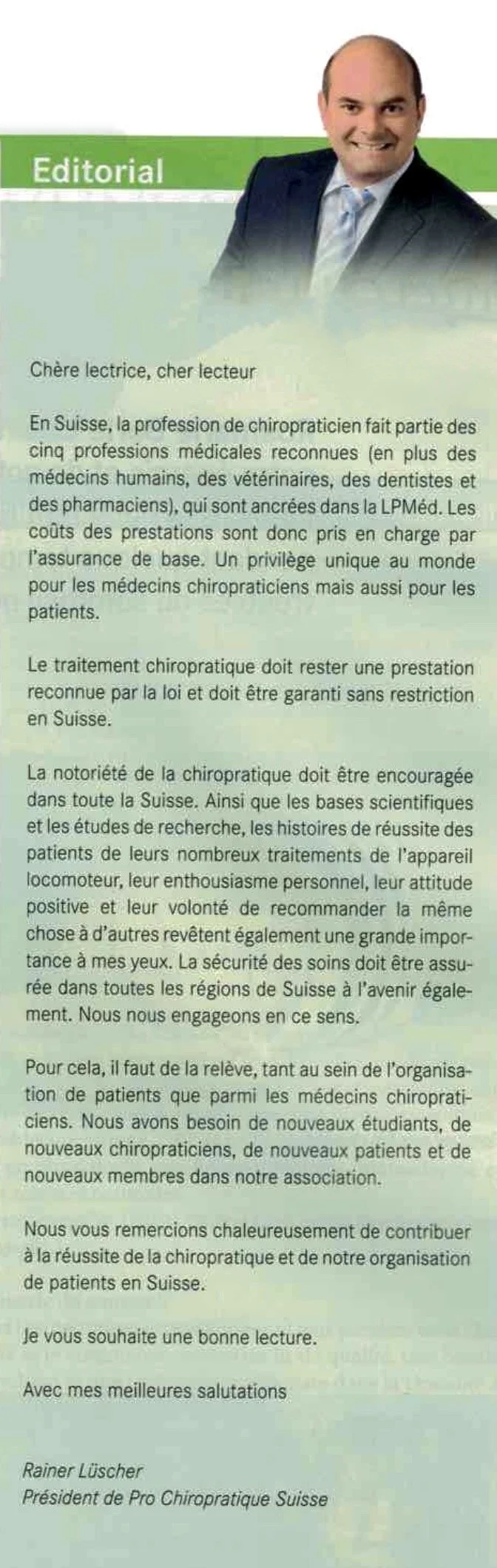 Président de l’Association Pro-Chiropratique: M. Rainer Lüscher